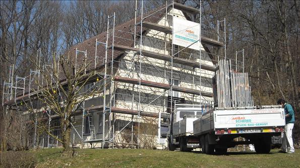 Fassadenrenovierung mit teilweißer Wärmedämmung